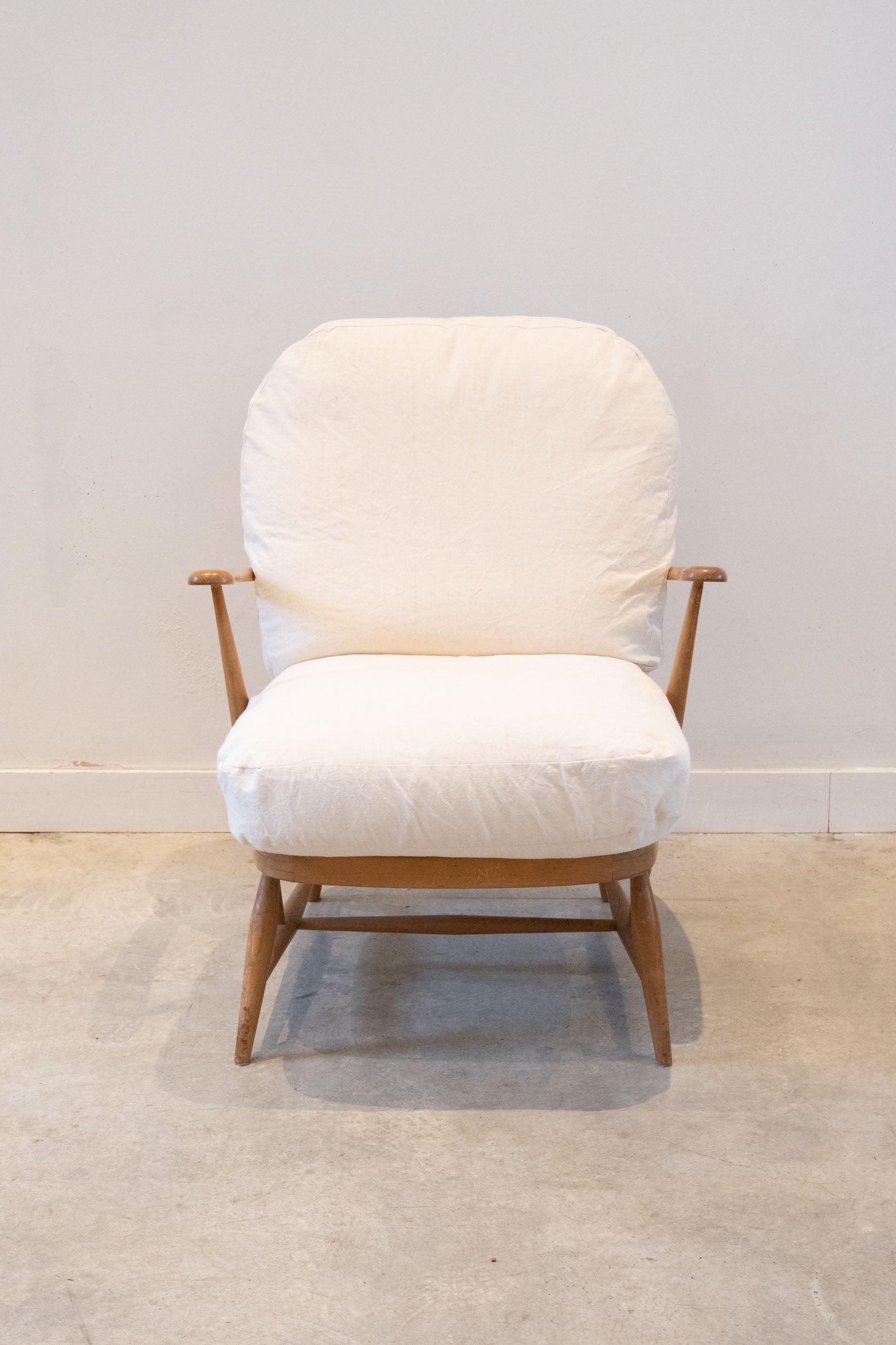 The cushions have been redesigned to be softer and fuller than the standard ercol cushion. It has been covered in a neutral linen that has been pre washed. A large zip makes it easy to remove the cover for washing.