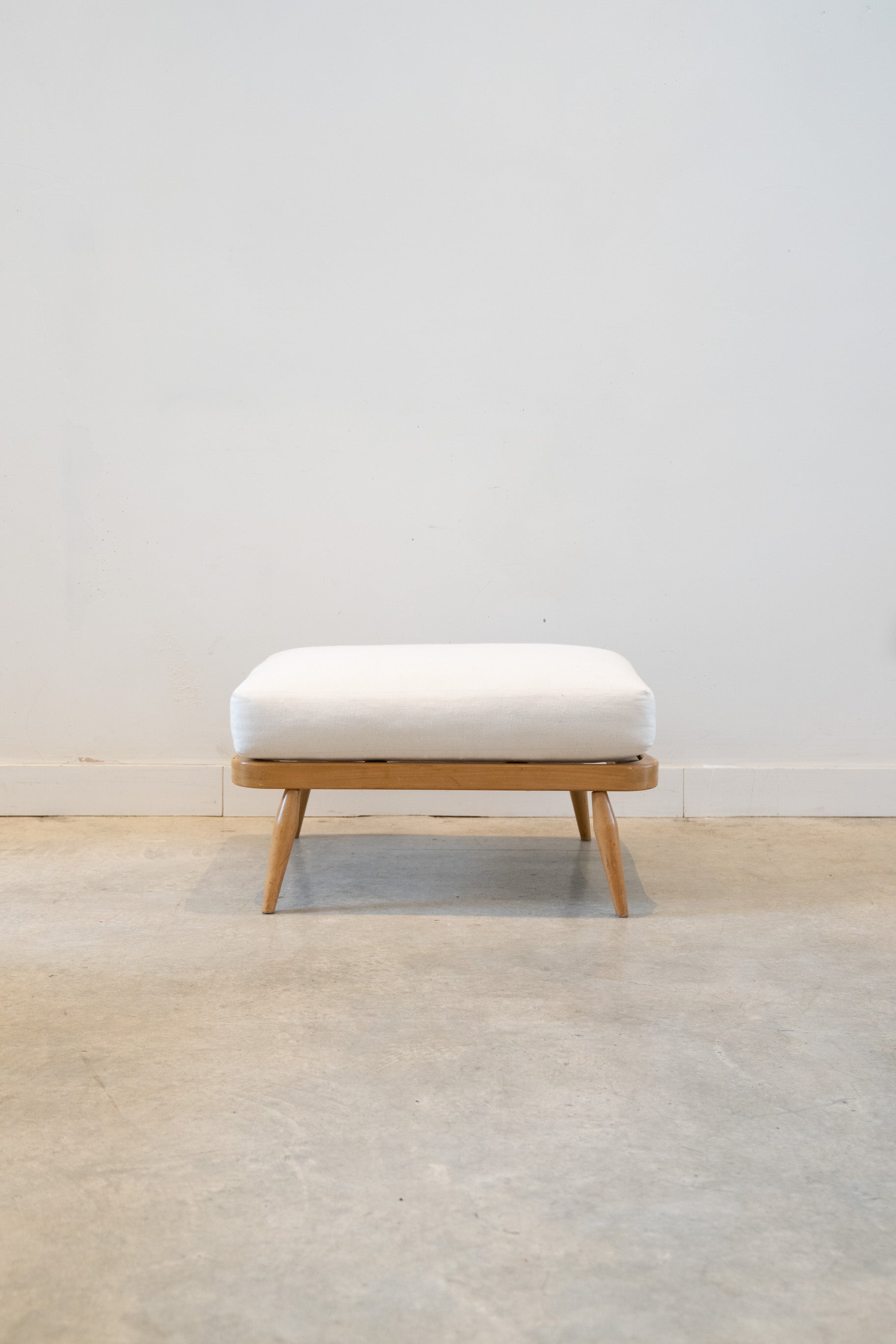 Fully restored Ercol footstool that matches Ercol 203 armchair and 203/2 sofa. This is supplied with an ultra soft cushions covered in preshrunk linen. Large zip so the cover is easy to take off and wash.