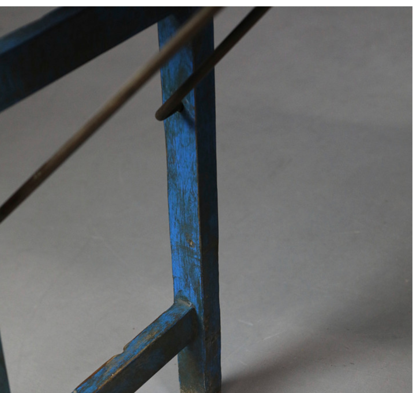 in a distressed industrial style blue painted finish 41cm d x 76cm t x 180cm
